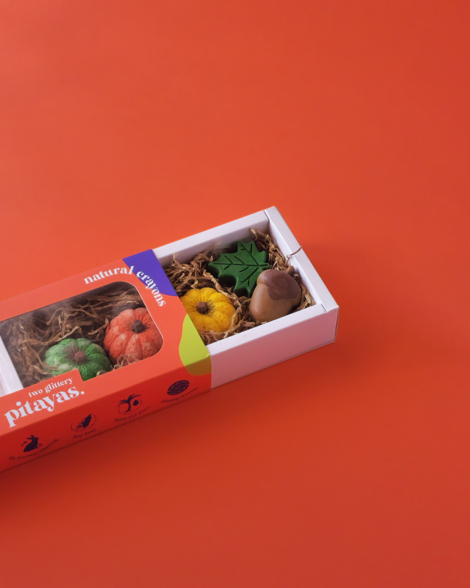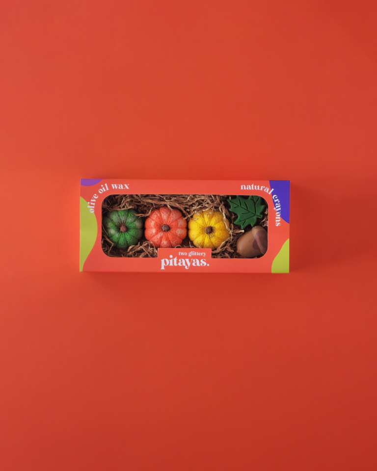 Λατρεύεις τις κολοκύθες? Τοτε αυτό το υπέροχα δημιουργικό σετ δώρου είναι για σένα! Το σετ αποτελείται απο 3 γιγάντιες χειροποίητες φυτικές κηρομπογιές σε σχήμα πραγματικής κολοκύθας, καθώς και ένα φύλλο κολοκύθας και ένα πανέμορφο βελανίδι!!Το πανέμορφο αυτό κουτί δώρου από χειροποίητες φυτικές κηρομπογιές,παρουσιάζει, εκτός από πρωτοτυπία, πολλαπλά εκπαιδευτικά οφέλη.
